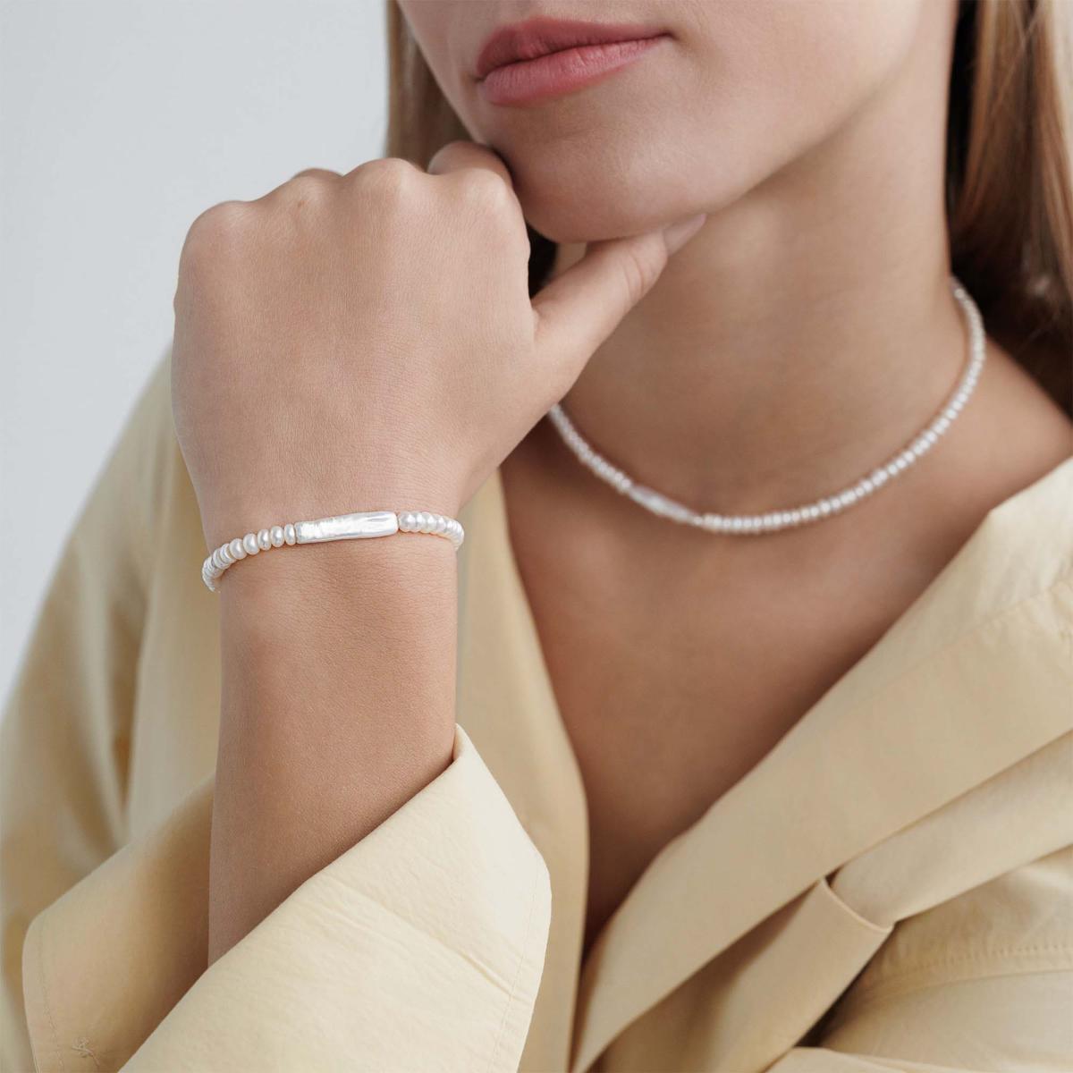 Sidabrinė perlų apyrankė su perliukais, ypatingo dizaino, minimalistinė moteriška apyrankė. Išskirtinė pigi dovana Kalėdoms.